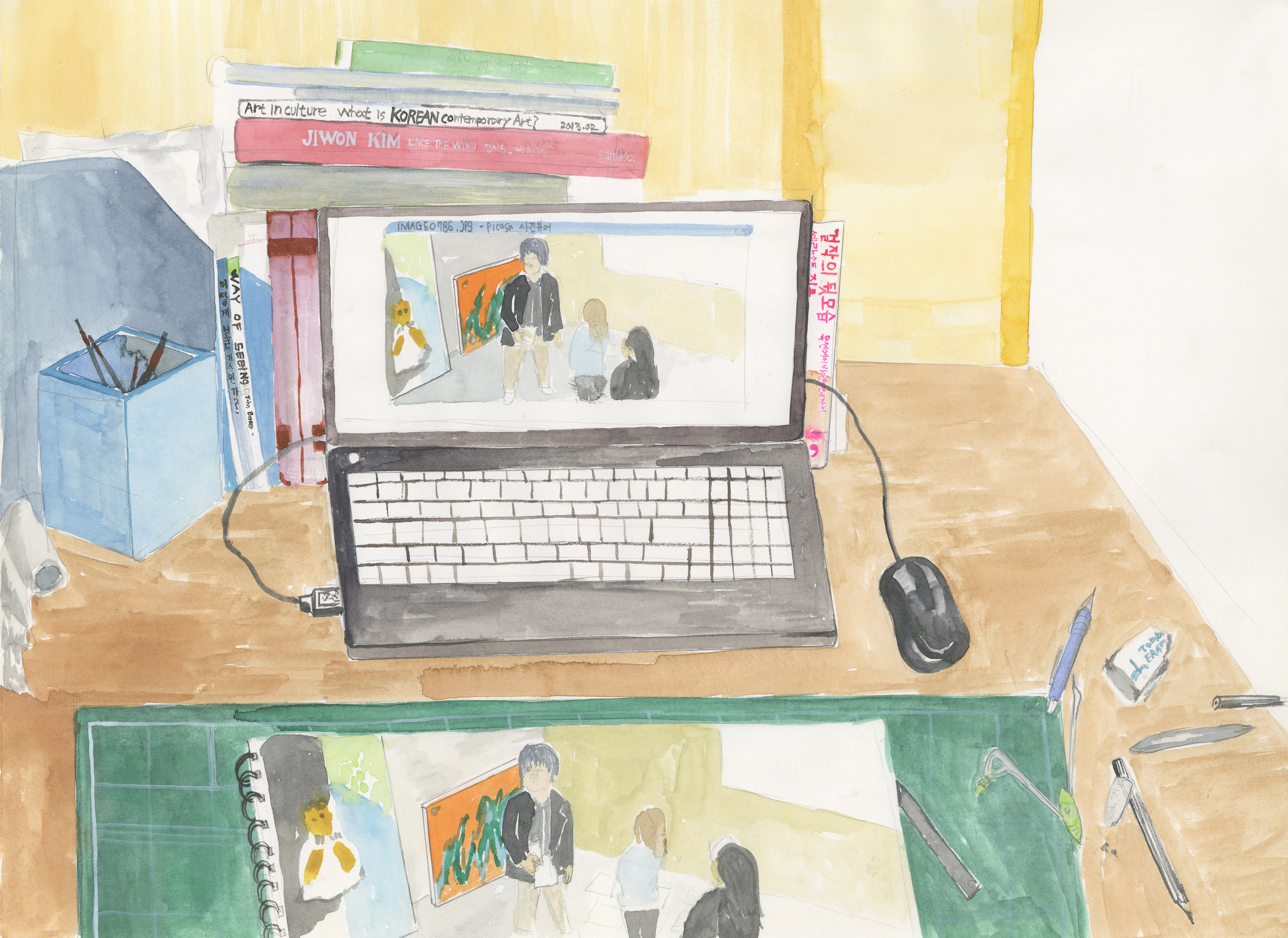 78-2013-333호 회화실의 김지원 선생님과 학생들 water color on paper 29.7 x 42