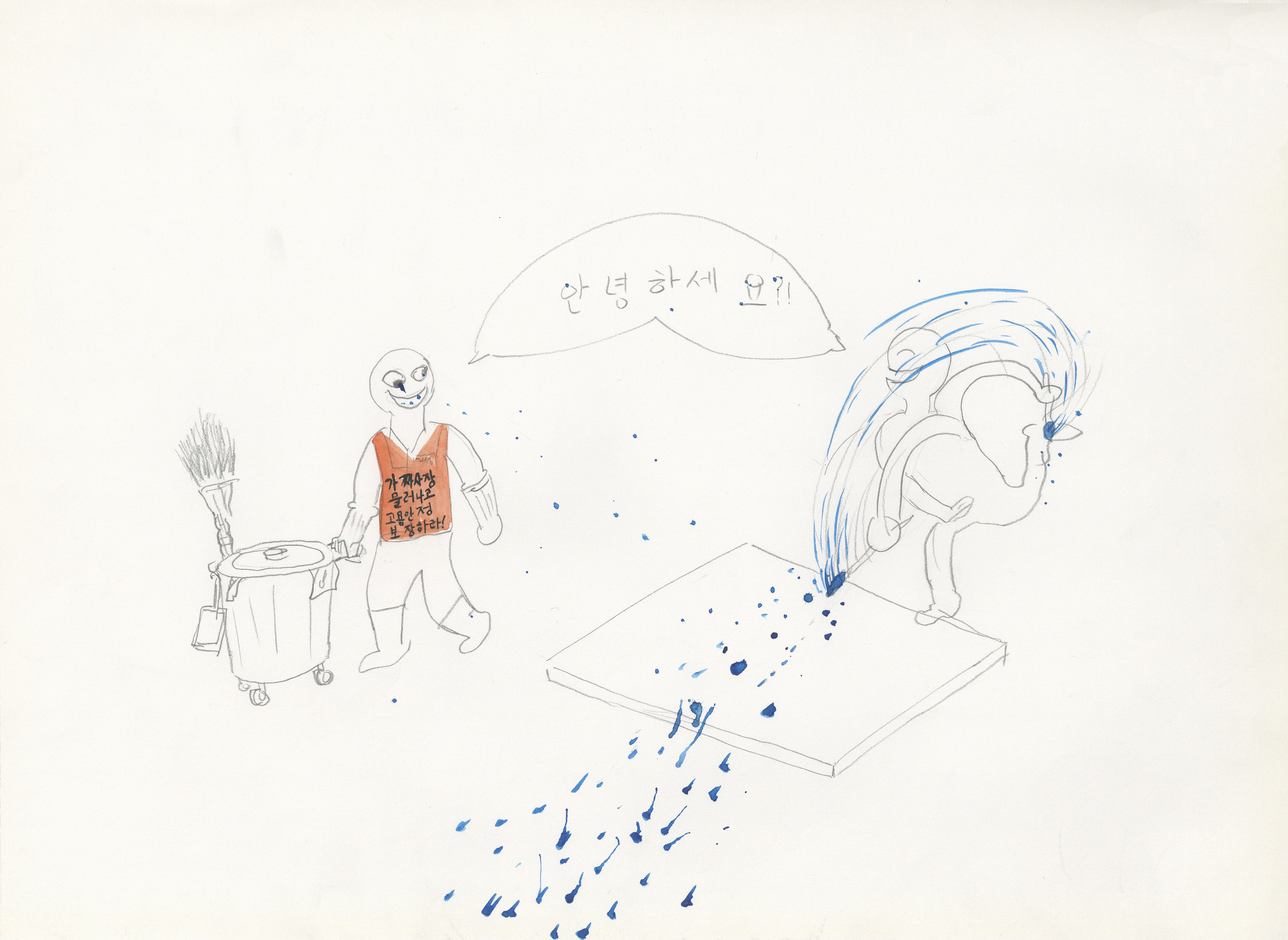 108-2013-투쟁중인 미화 여사님들과 학생들(회화실) water color on paper 29.7 x 42