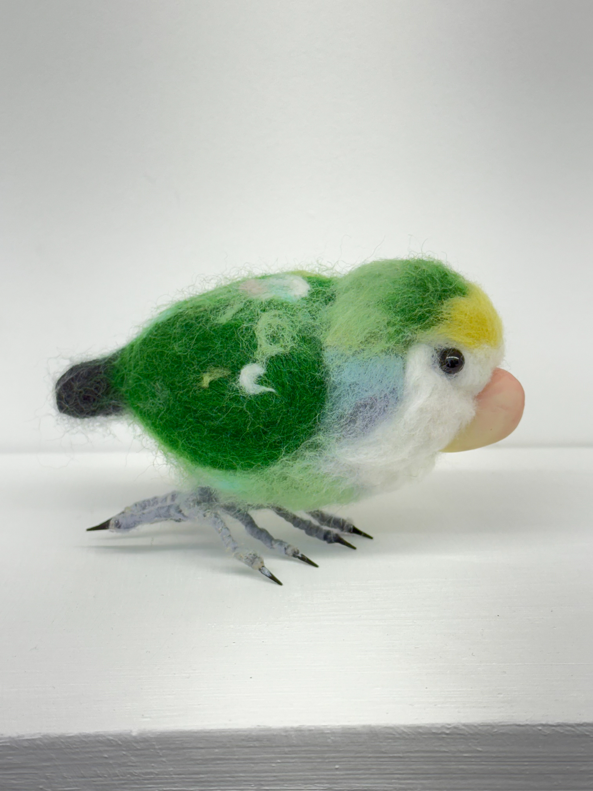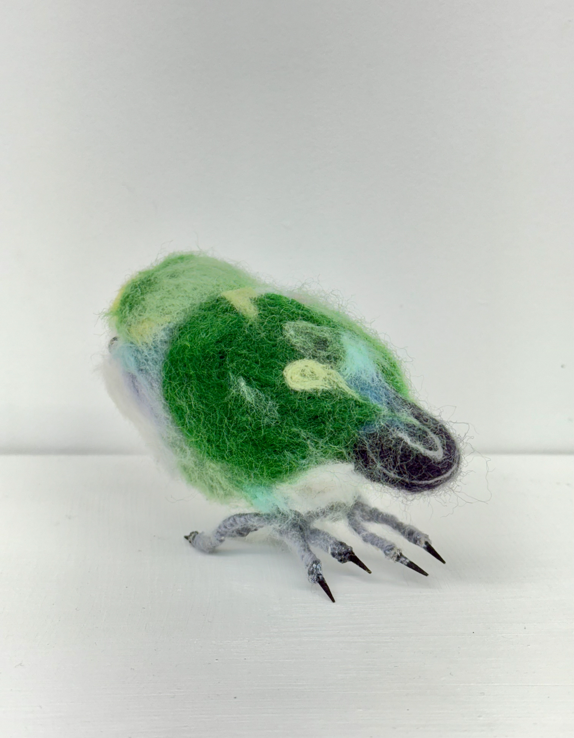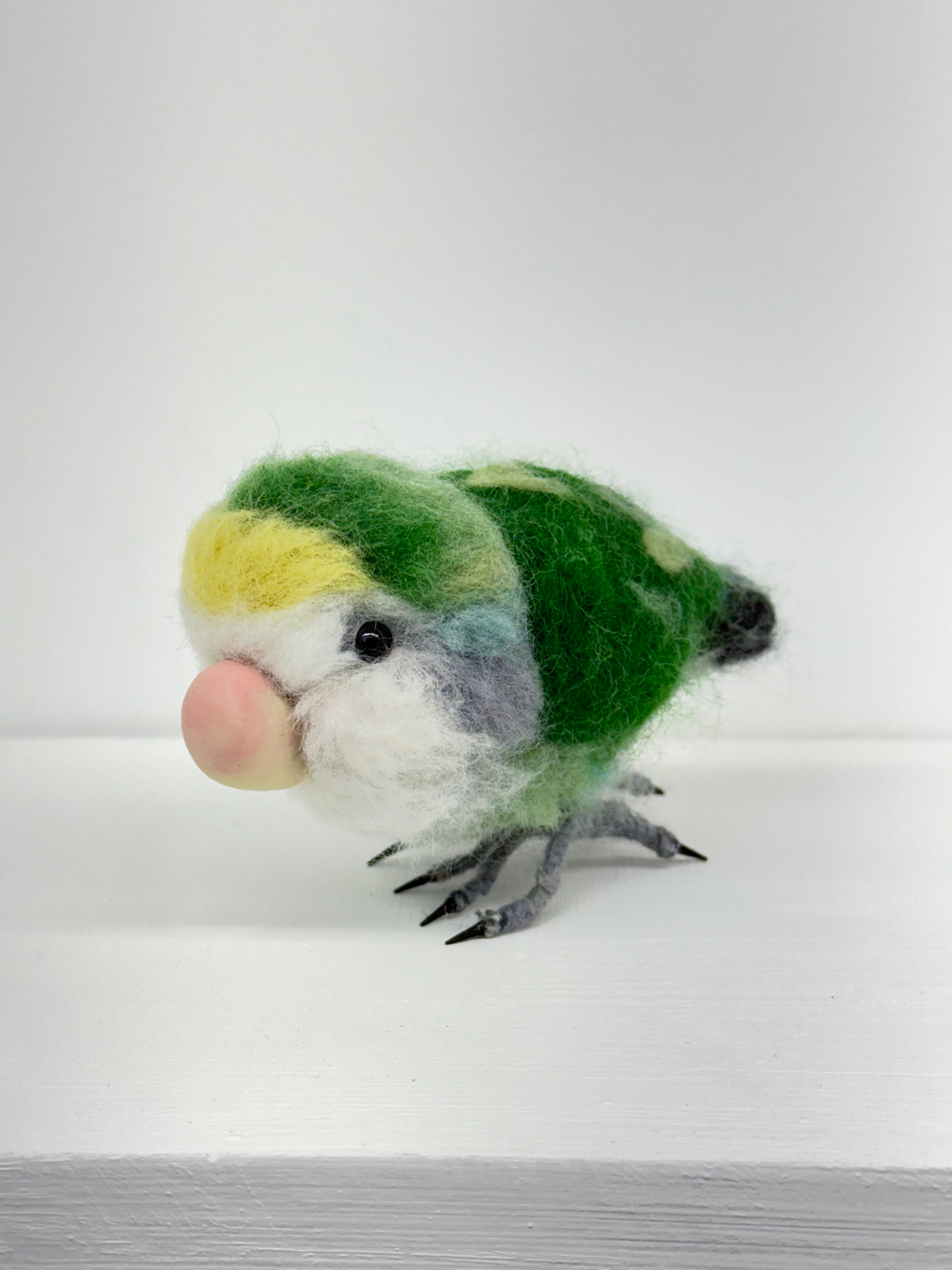 이번 단체전의 서문을 써준 김지현 비평가에게 그녀가 키우던 모란 앵무 '금이'를 양모 펠트로 만들어서 선물했다.