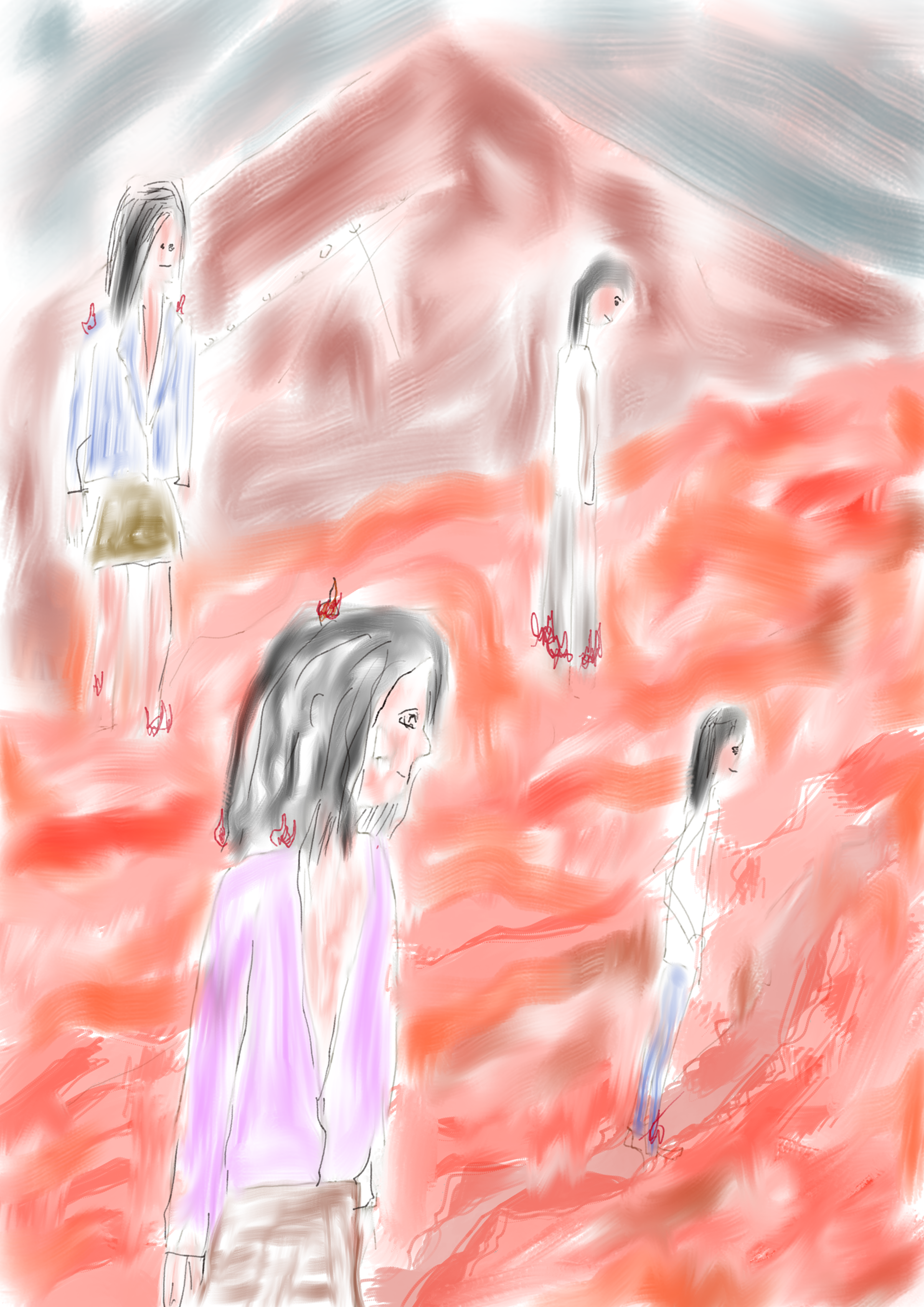 그림 속에 일부로 머리 긴 사람들을 그려 넣는다. 물론 남자보다 여자가 좋은 탓도 있지만, 남자를 그려넣으면 그림 속 인물들과 상황을 나와 내 주변 인물에 대입하여 해석하는 사람들이 많았기 때문이다. 모든 사람이 나를 이해할 필요는 없고, 이해를 바라지도 않는다. 이제부터는 오해하면 오해한 채로 내버려두고 살아보려 한다.